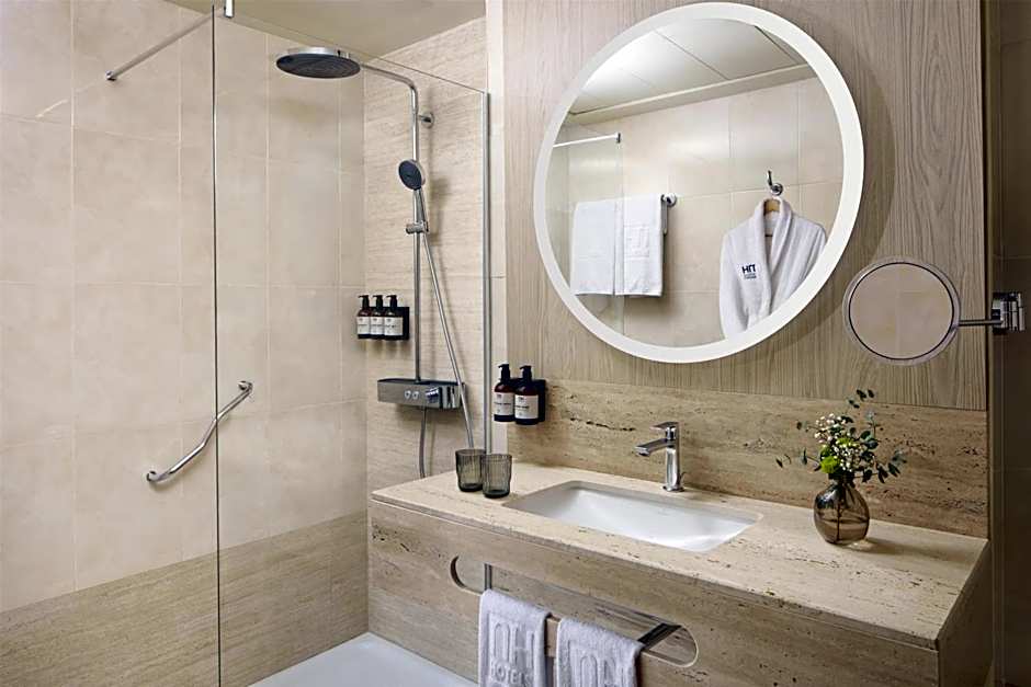 Providing free toiletries and bathrobes, this double room includes a private bathroom with a bath, a shower and a hairdryer. The air-conditioned double room provides a flat-screen TV with satellite channels, a mini-bar, a tea and coffee maker, a safe deposit box as well as a quiet street view.
